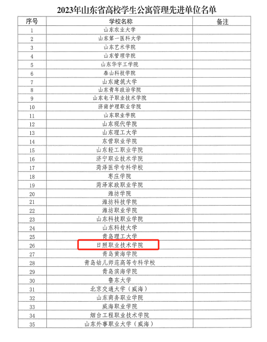 近日,2023年山东省高校学生公寓管理工作评优表彰结果揭晓,学校喜获“山东省高校学生公寓管理先进单位”荣誉称号,全省共有35所高校获评先进单位。