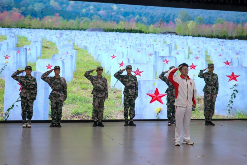 建筑工程系朗诵作品《山河赋色・红旗飘扬》以诗意语言勾勒山河壮丽与红旗精神,电子信息工程系情景剧《逐光・成长》通过退伍学子帮扶同学、组队参赛的故事,展现新时代青年在互助成长中逐梦前行的姿态,让历史厚度与青春温度在舞台上同频共振。