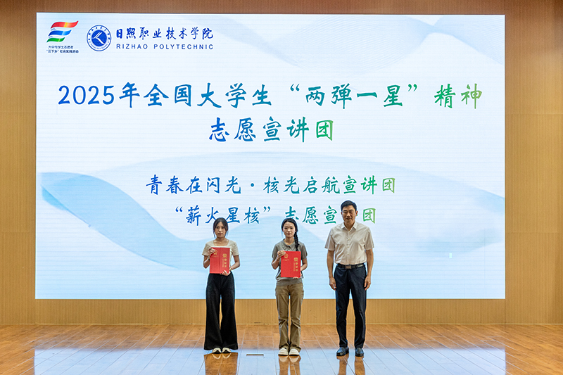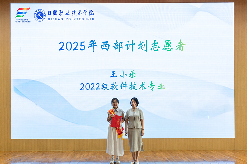 仪式在团课情景剧《工匠炼成记》中启幕,该剧以生动的舞台语言,展现了日职青年学子在实践中锤炼技能、以匠心打磨青春的历程,深刻诠释了新时代工匠精神的传承与发扬。在表扬环节,对青马工程优秀学员、“百万大学生进社区”优秀服务团队、2025年全国大学生“两弹一星”精神志愿宣讲团及西部计划志愿者进行了表扬。青马工程学员、社区实践学生代表孟铖同学分享了她在基层服务中的点滴感悟,以亲身经历诠释了“实践出真知”的深刻内涵。四个地方团组织负责人为2025年暑期社会实践校级重点团队授旗,激励着青年学子们在实践中展现青春风采。崔超凡同学带领参加社会实践的全体同学宣读社会实践倡议书,号召大家以行动凝聚力量,共赴乡村振兴、基层服务的实践之约。活动最后大学生讲思政课《乡村振兴从他们到我们》,讲述日职学子深入家乡热土调查研究的故事,展现了青年在乡村振兴战略中的蓬勃力量。