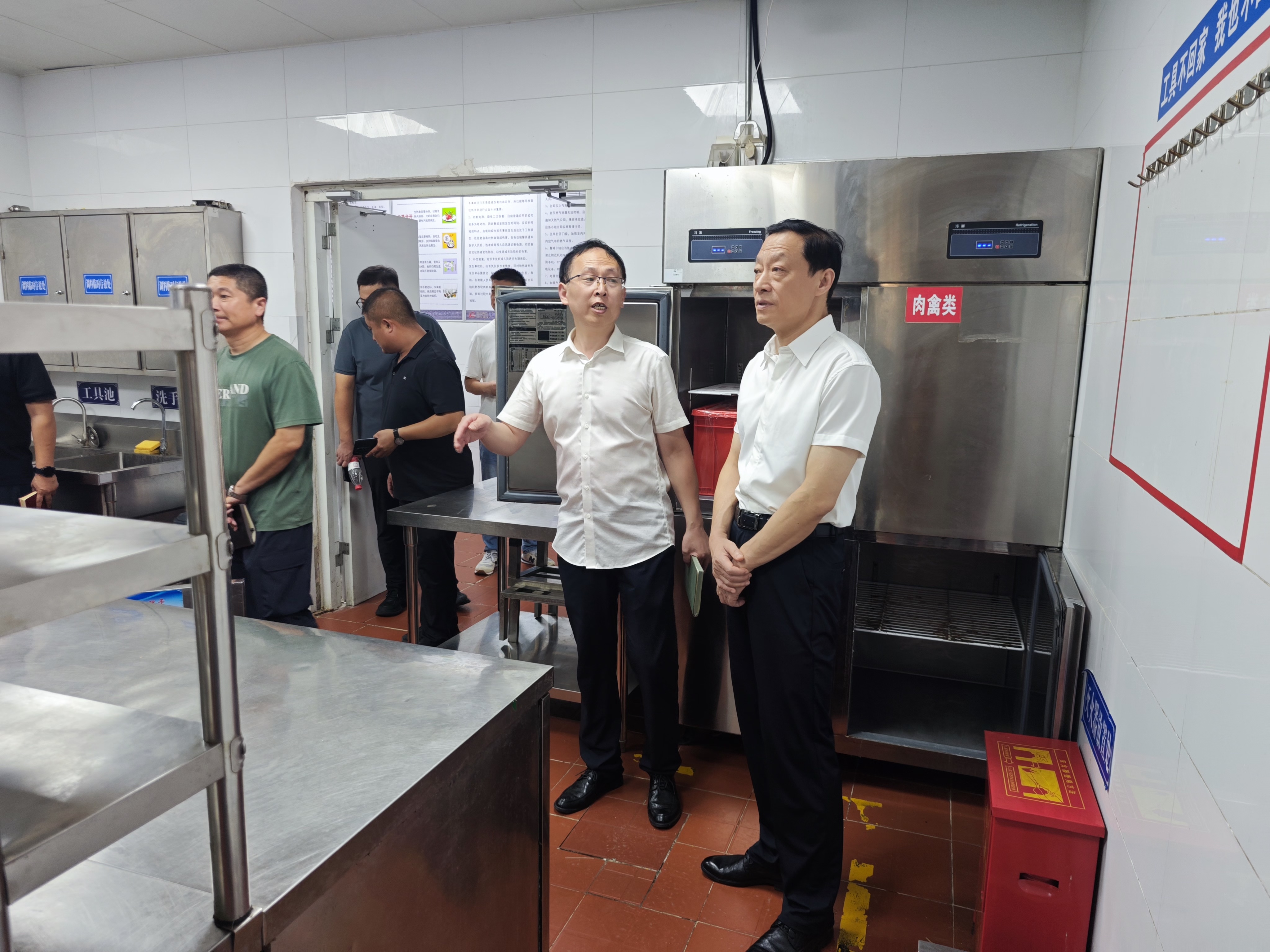 为调度七、八月份食品安全工作落实情况,切实做好秋季新学期开学食品安全保障工作,确保广大师生“舌尖上的安全”与健康。27日下午,党委副书记、院长苏海勇,党委委员、副院长厉建刚,总务处及餐饮单位相关人员一起,深入到各餐厅,对新学期餐饮服务准备工作进行了全面、细致的检查。