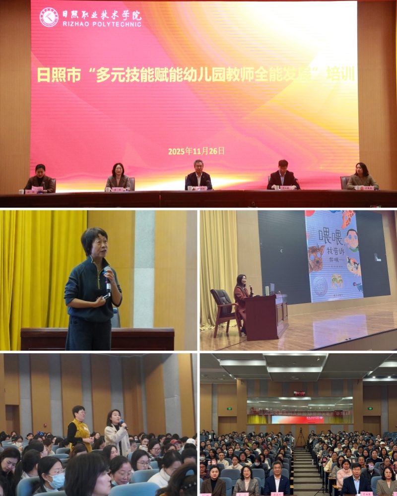 11月26日至27日,由日照市教育局、日照市人力资源和社会保障局主办,我校承办的日照市“多元技能赋能幼儿园教师全能发展”培训项目圆满完成。此次培训吸引了来自日照市临近区县的300余名幼儿园骨干教师线下参会,同时,日照莒县、五莲县、岚山区及新疆喀什城区的500余名幼教同仁通过线上直播的方式同步参加了培训。