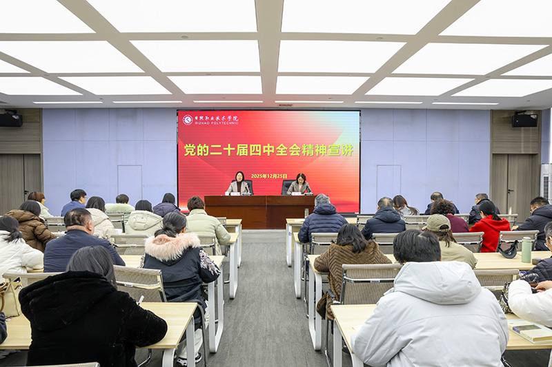 肖梅围绕“深刻领会全会重大意义”“准确把握全会的核心要义”“坚定信心推动学校事业高质量发展”三个方面,结合职业教育发展使命与学校办学实际,进行了系统阐释和深入解读。首先,她从历史、现实、未来和职业教育四个维度阐释了党的二十届四中全会在擘画“十五五”发展蓝图、谋划2035年远景目标中的重大而深远的意义,要求切实增强学习贯彻全会精神的政治自觉、思想自觉和行动自觉。接着,她围绕“十五五”时期发展的指导思想、重大原则、主要目标和重点任务,结合学校办学实际,解读了全会精神的核心要义。她指出,针对全会提出的建设现代化产业体系、加快科技自立自强等重点任务,我们必须主动对接产业变革,通过专业迭代升级、产教融合协同创新、数字化育人转型等举措,培养更多德技并修的高技能人才。最后,她从学校、教师和学生三个层面对贯彻落实党的二十届四中全会精神提出了具体要求。学校层面从坚持党的全面领导、落实立德树人根本任务、深化产教融合校企合作、建设高素质教师队伍、提升服务经济社会发展能力、推进学校治理体系和治理能力现代化等方面提出了落实全会精神的具体举措;教师层面要聚焦“育人+服务”,将全会精神融入课程教学、深化校企合作与社会服务、强化师德与能力双提升,全面践行全会精神;学生层面要聚焦“学习+实践”,深学细悟全会精神,筑牢思想根基、以练促学,锤炼专业本领、服务社会、践行青年担当,为社会主义现代化建设贡献力量。