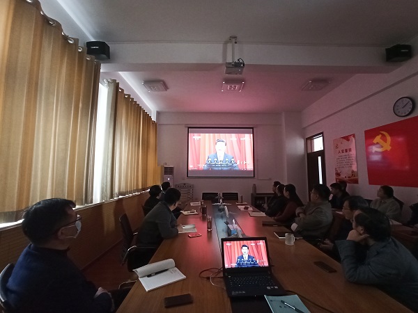 学院党总支书记、副院长刘祥斌首先带领大家集体学习了习近平总书记在纪念中国人民志愿军抗美援朝出国作战70周年大会上的重要讲话精神。随后大家集体观看大型电视纪录片《为了和平》(第一、二集)。