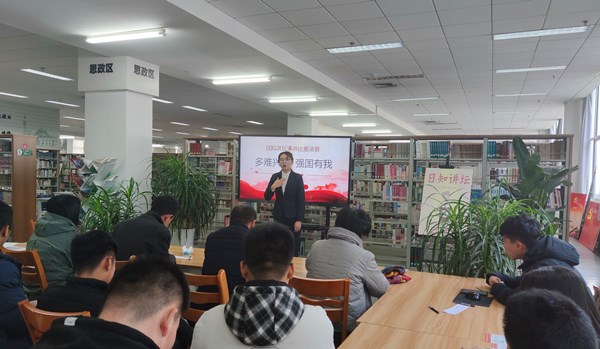 为深入贯彻习近平总书记在学校思想政治理论课教师座谈会上的重要讲话精神,引导我校大学生树立社会主义核心价值观,12月3日,图书馆举办了以“多难兴邦 强国有我”为主题的思政教育演讲比赛。