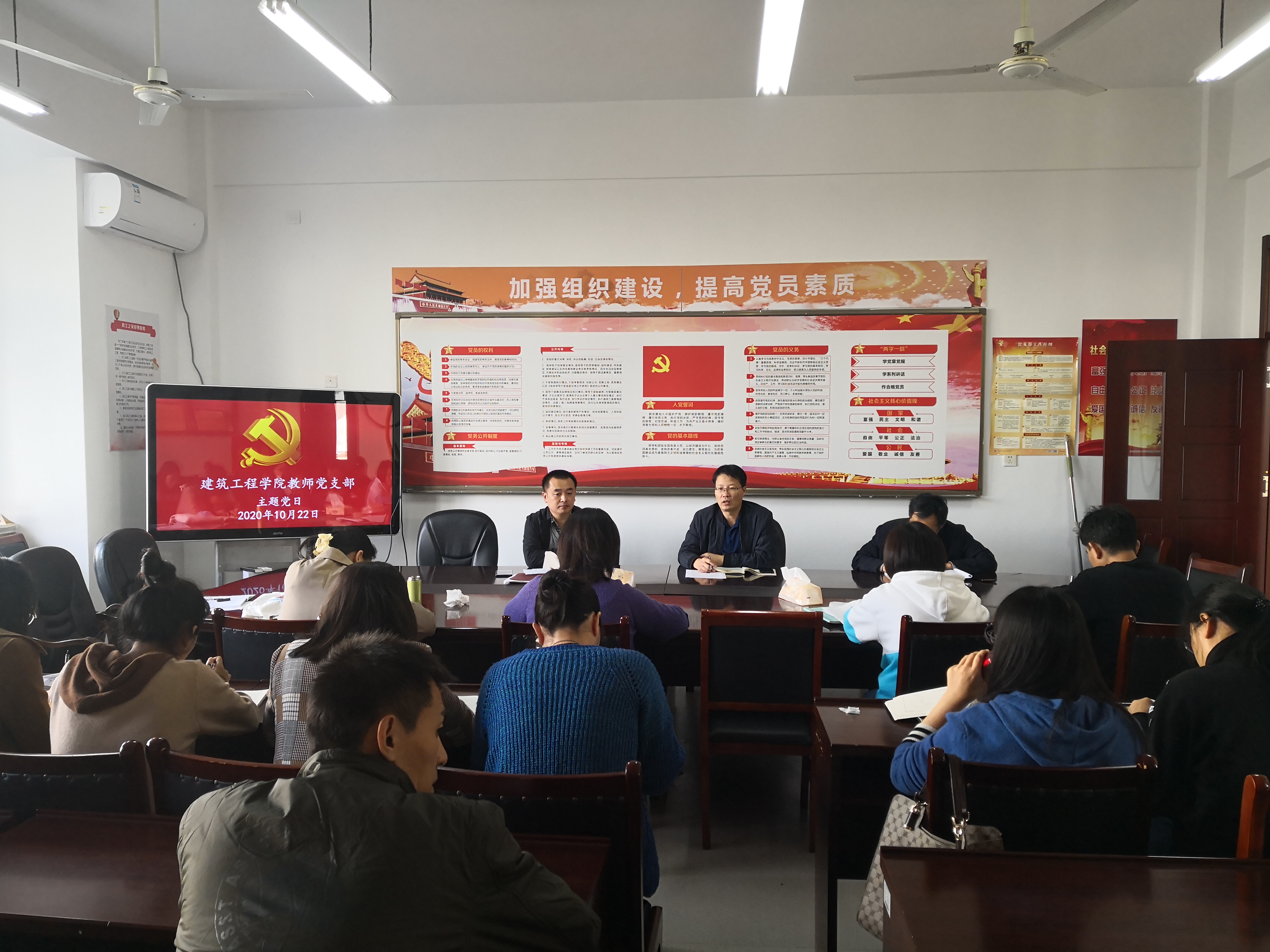 10月22日下午,建筑工程学院教师党支部在海润楼N211召开10月份第二次主题党日活动,会议由教师党支部书记杨志刚主持,建筑工程学院党总支书记、院长徐锡权及支部全体党员参加了此次会议。