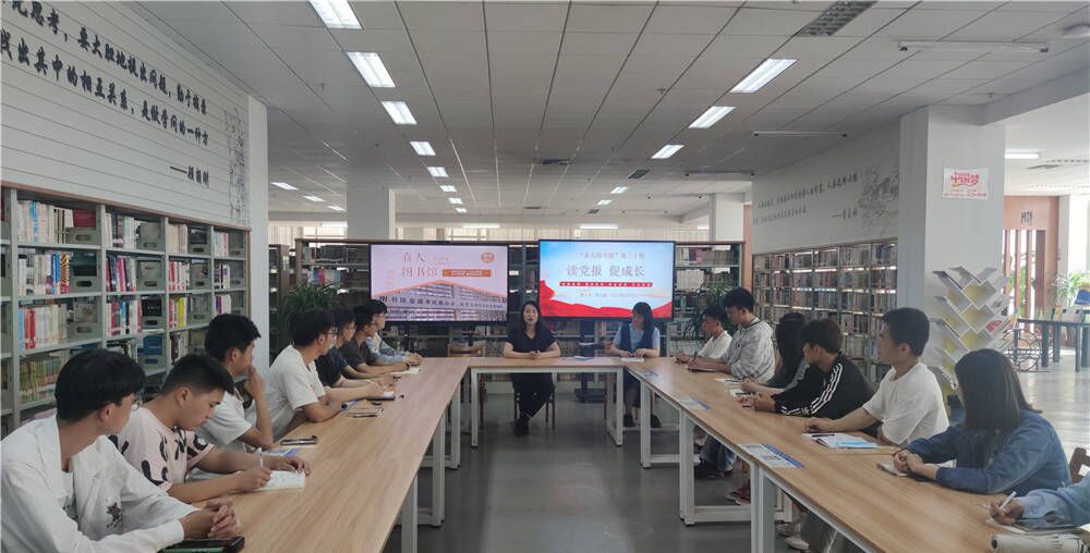 为扎实推进习近平新时代中国特色社会主义思想进学校、进课堂、进头脑,引导学生坚定中国特色社会主义“四个自信”,树立正确的世界观、人生观、价值观,图书馆于6月7日在人文素养共享空间阅读区举办第二十期“真人图书馆”活动。本期真人图书分享的主题为“读党报 促成长”,邀请创意设计系党总支副书记张云丽作为嘉宾,带领读者充分认识开展读党报活动的重要意义,让读者学有所得、学有所悟。