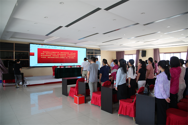会上全体党员重温入党誓词,通报党费收缴情况,开展第一议题学习。