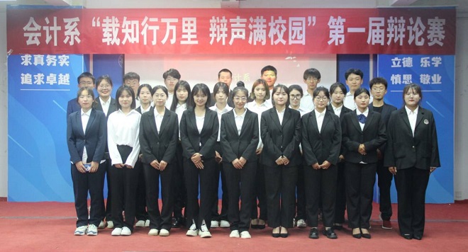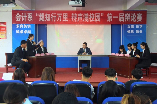 为提升学生会成员的思想深度和内涵水平,增进校园文化底蕴,锻炼交际反应能力、学生口才以及舞台展现能力,推动我系精神文明建设,展现学生会成员热情、富有活力的青春风采。6月6日-10日晚,会计系在山润楼119举办了“载知行万里,辩声满校园”首届知识辩论赛。