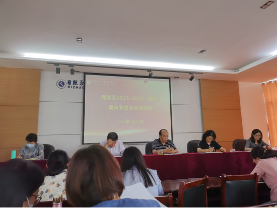 6月14日下午,商学系在海润楼N302举行了期末考试专题培训会,会议由商学系党总支书记牟宗国主持,副主任申作兰进行培训,商学系所有教师参加。