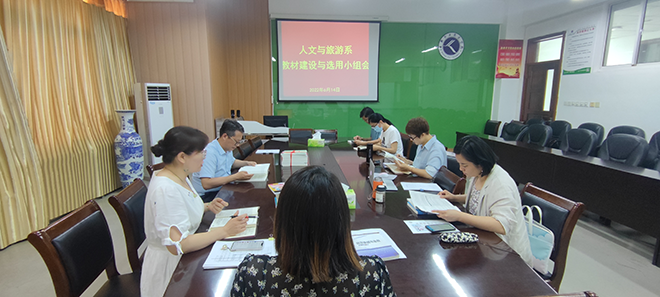 为做好下学期教材选用工作,确保优质教材入课堂,6月15日上午,人文与旅游系在和润楼B304召开2022年秋季教材建设与选用审核会议。会议由系副主任秦志玉主持,各教研室主任、教学科人员参加。