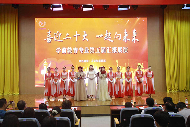 为了充分展示专业办学成果,全面考察学生专业技能,6月14日下午,人文与旅游系在图书馆二楼报告厅隆重举行主题为“喜迎二十大 一起向未来”第五届学前教育专业汇演。人文与旅游系党总支书记李侠、副书记陈玉香和500余名师生参加了活动。