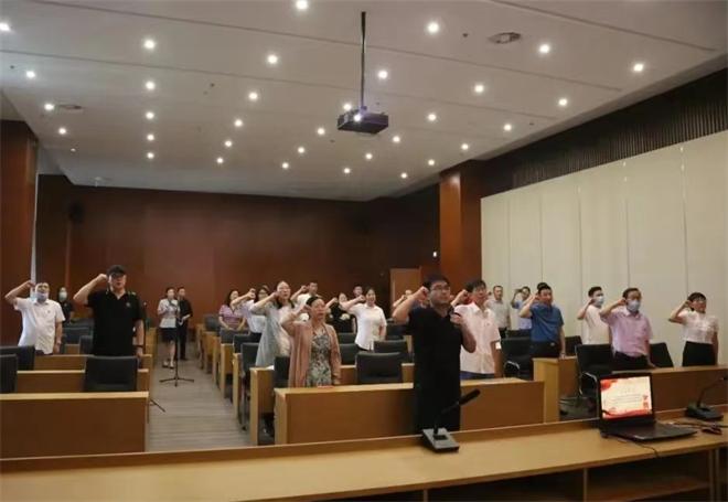 接着,党员们怀着无比崇敬的心情,认真聆听和朗诵了革命战士王进“战地日记手稿”,并学唱战地日记中记录的鲁东南红歌《春耕曲》,重温老一辈中国共产党人为初心使命而奋斗的事迹,深刻感悟中国共产党人不怕牺牲、前赴后继的革命精神,感悟中国共产党人为实现人民幸福和民族复兴而不懈奋斗的使命担当。在参观结束前,全体党员面向鲜红的党旗,重温入党誓词,进行庄严宣誓。