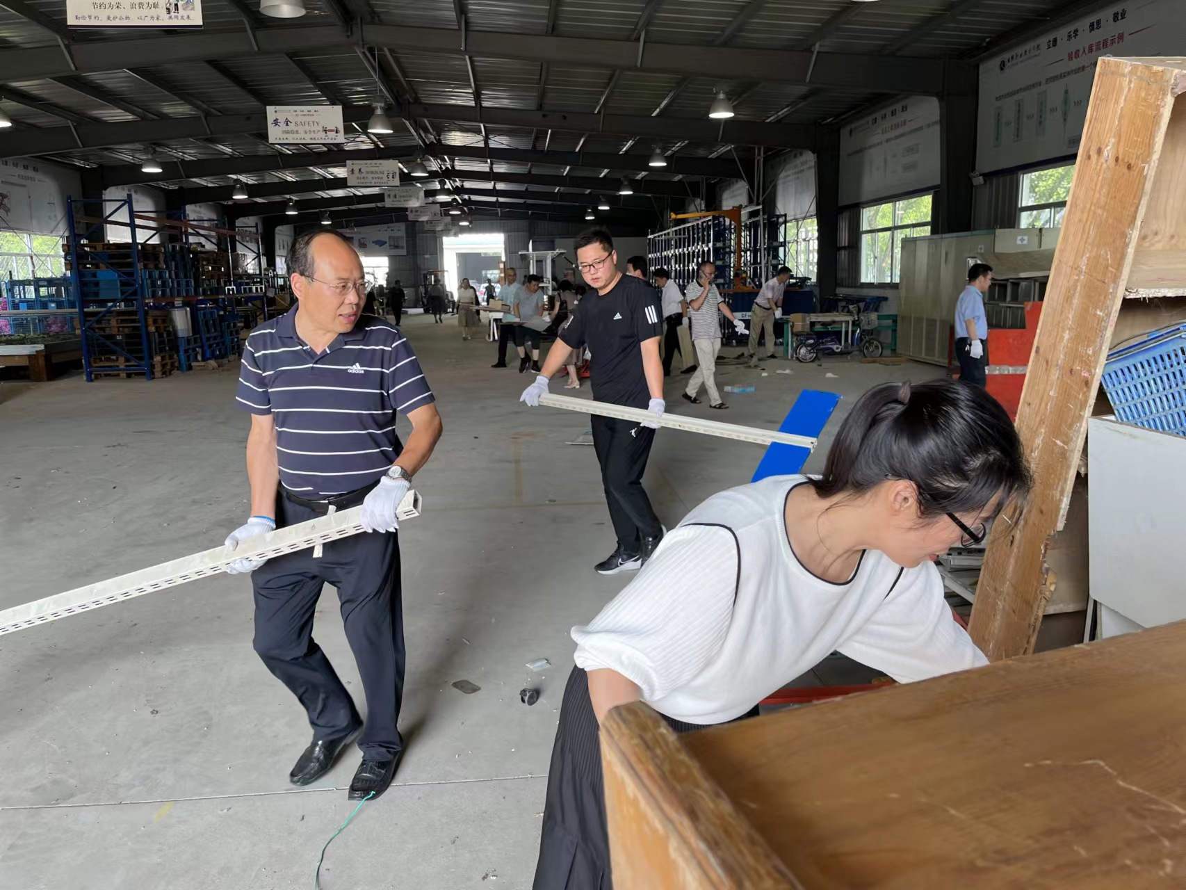 会后,牟宗国带领全体教师党员开展志愿服务活动。此次活动是将物流实训中心进行全面清扫。活动以三个支部为单位,划分责任区开展劳动。劳动现场,大家热情高涨、分工合作、默契配合。有的党员抬废料,有的党员整理实训设备,有的党员运输垃圾。经过一下午的辛苦劳动,实训中心变得井井有条,干净整洁。通过此次志愿活动,展现出全体党员“敢于吃苦、乐于奉献”的良好风貌,彰显了党员干部先锋模范作用。(商学系 田红梅)
