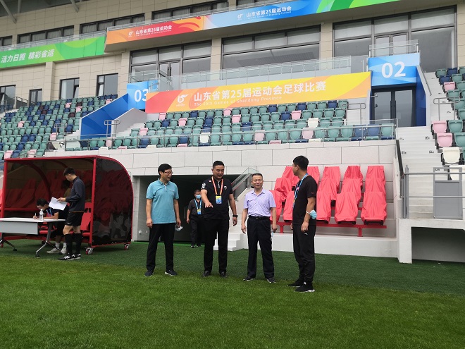 为深入了解参加省(残)运会安检服务学生的思想、学习、生活和工作情况,传达学校对学生的关怀和期望,7月11日,通用航空系党总支书记牟盛勇、副主任孟凡收、通用航空航务技术专业教研主任汪云轩等一行四人到日照国际足球中心、日照市东港体育中心看望学生。