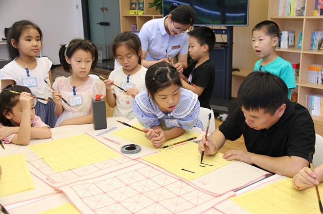 活动中,开放教育系选派了有爱心、教学经验丰富的美术老师和书法老师给孩子们带去了艺术大餐。美术课上,朱洁老师从环保绘本故事开始给孩子们讲解如何构图、如何点缀等绘画技巧。书法课上,庄春老师详细介绍了书法的内涵,如何开笔、握笔以及书法过程中的要点。每一次课堂活动,孩子们都目不转睛地听着老师的讲解,仔细看着老师的示范,认真创作、临摹,劲头十足。截至目前,三期书画公益课堂活动期期爆满,共有90名小学生参与培训,既丰富了孩子们的暑假生活,让孩子们学到了书画知识和技能,同时也解决了家长们炎炎暑期无暇看护孩子们的后顾之忧,让他们放心满意。