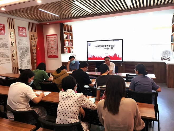 为切实做好2022级新生入学报到工作,9月1日下午,会计系在海润楼N417会议室召开2022年迎新工作协调会,会议由会计系党总支副书记朱华东主持,系党总支书记訾波、团总支书记刘婷、教学科科长李欣雨、全体辅导员及新生班主任参加会议。