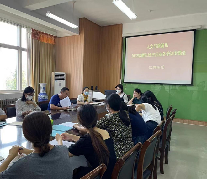 为进一步做好新生开学报到工作,提升班主任队伍工作水平,扎实推进全员育人,充分发挥班主任在学校教育和班级管理中的骨干作用,9月1日,人文与旅游系在和润楼B304召开了2022级新生班主任工作会议。本次会议主要围绕新班主任业务培训、迎新工作部署、新老班主任结对子等内容进行。