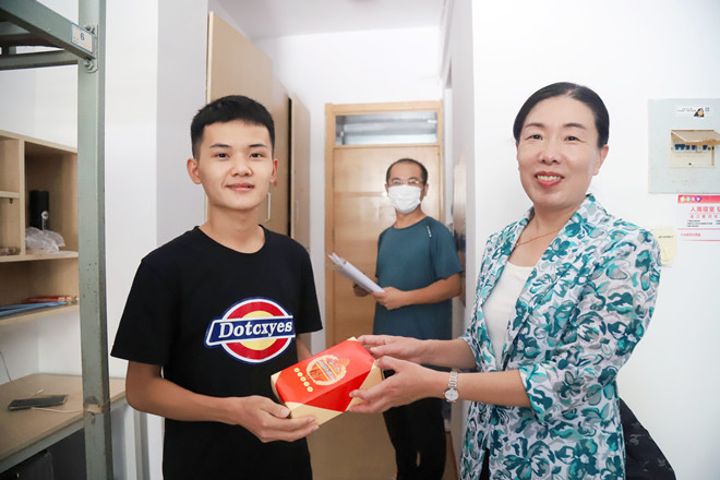 丹桂飘香月当空,中秋校园情意浓。9月10日上午,正值中秋佳节之际,机电工程系领导、专兼职辅导员以及班主任深入学生公寓,走访学生宿舍,慰问我系在校学生,向学生致以节日的问候,并为他们送去精心准备的月饼,让同学们感受到浓浓的亲情和机电系大家庭的温暖。