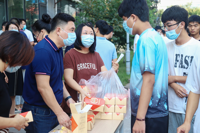 今年中秋节,机电工程系心系广大学子,为2300余名学生发放了中秋月饼。领取月饼的同学们脸上洋溢着感动与喜悦,每一声“谢谢”里都浸满了幸福的味道。领导们的亲切看望,热情的话语,亲切的问候,让寝室里欢声笑语,洋溢着师生间的浓浓情意。