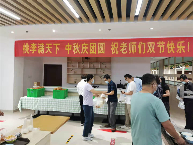 9月9日中午,学校餐厅举行“桃李满天下、中秋庆团圆”为主题的教师节、中秋节回馈活动。活动现场,工作人员向前来就餐的每位教职员工送上精心制作的月饼,表达敬意和节日的祝福。工作人员还向到餐厅就餐的同学免费发放月饼和饮料,让同学们感受到学校大家庭的温暖。回馈活动洋溢着浓浓的节日气氛,受到了师生的一致好评。
