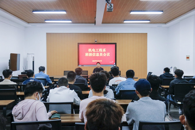 9月27日,机电工程系在山润楼423会议室召开班级安全信息员工作会议,安排部署学生安全隐患排查和整改工作。机电工程系学生科(团总支)书记张西进,各年级辅导员、班主任以及来自各个年级、52个班级的安全信息员共60余人参加会议。