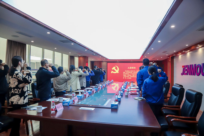 随后,校企双方在金马集团会议室开展了座谈。双方分别介绍了结对共建支部党建工作情况并交流了基层党建工作经验。重点围绕校企合作技术研发、共建“汽车零部件公共实训基地”及技能大赛结队帮扶等方面进行了深度探讨和交流,并达成一致意见。最后,全体党员重温了入党誓词。