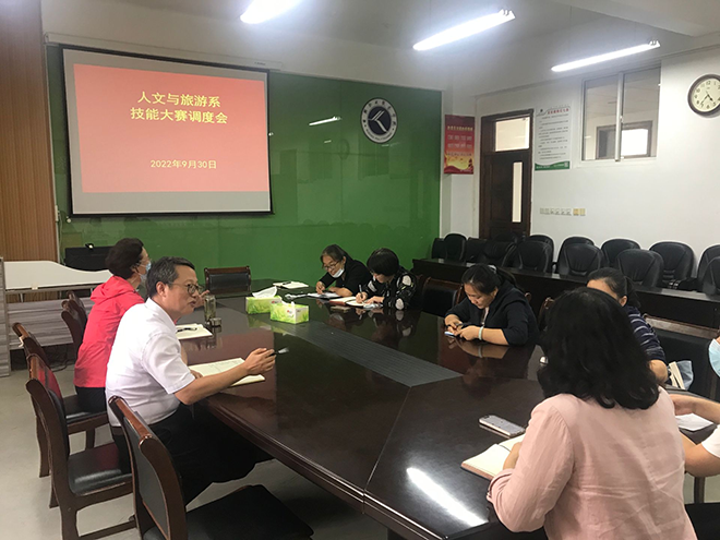 为做好2022年山东省职业院校技能大赛训练工作,9月30日下午,人文与旅游系在和润楼B304召开技能大赛备赛工作调度会。系党总支书记李侠,副主任秦志玉,教学科代理科长张金芝以及各赛项指导教师参加会议。