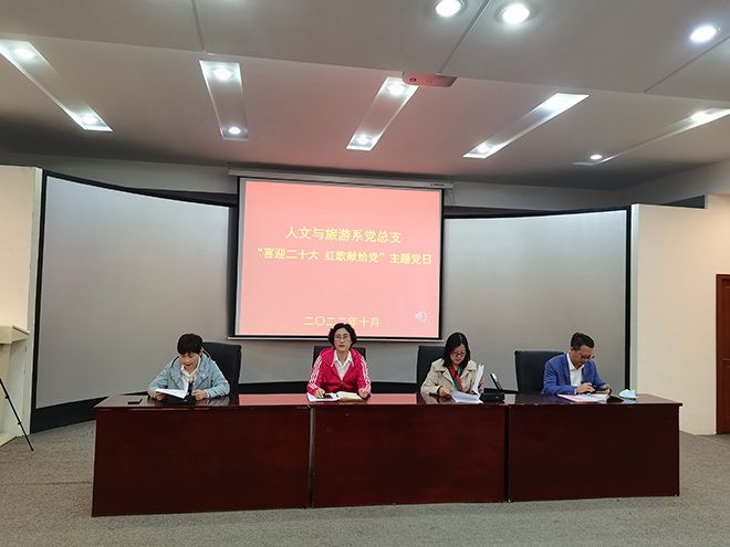 为喜迎党的二十大,传承红色革命精神,唱响时代主旋律,生动展示基层党组织的核心战斗力、凝聚力、向心力。10月6日,人文与旅游系党总支组织开展了十月份第一次主题党日活动。此次活动以“喜迎二十大 红歌献给党”为主题,用歌声抒发了对党的赤诚之心和对伟大祖国的热爱之情。