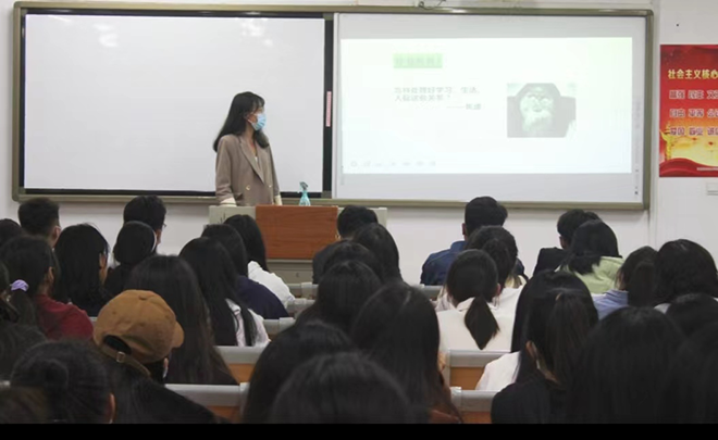 本次培训由系辅导员教师仝庆娟主持。她首先强调了心理委员与宿舍舍长在心理健康教育中的责任与使命,认为他们作为系部心理健康教育工作重要力量之一,要做好传播心理健康知识的桥梁,连接着系部、滋润着同学。接着,以一起大学生案例引入,她介绍了一系列可能引发心理危机的原因以及发现心理危机之后的恰当处理方式。最后,她鼓励学生扮演好排雷兵、传声员和同辈支持者的角色,建议大家与辅导员和心理老师及时沟通交流,在帮助同学的过程中注重自我的发展。