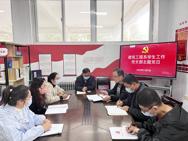 11月7日上午,建筑工程系学生工作党支部在海润楼M101开展十一月份第一次主题党日活动,会议由学生党支部书记毛风华主持,全体党员教师参加会议。