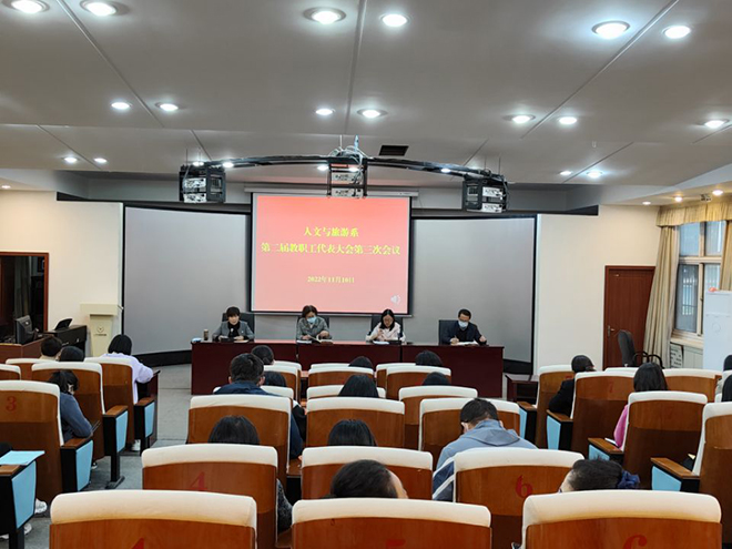 11月10日下午,人文与旅游系在和润楼一楼报告厅召开第二届教职工代表大会第三次会议,会议由系分工会主席陈玉香主持,全体教师参加。