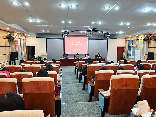 为深入学习贯彻党的二十大精神,进一步统一思想,凝聚力量,11月10日下午,人文与旅游系党总支在和润楼一楼报告厅开展十一月份第一次主题党日活动。活动由系党总支副书记陈玉香主持,全体党员教师参加会议。