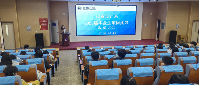 为推动顶岗实习工作顺利开展,11月14日,创意设计系在地滋楼A区二楼报告厅召开2023届毕业生顶岗实习动员大会。系副主任李洪军、教学科科长杜鹃、各专业教研室主任、顶岗实习指导教师、毕业班班主任以及540名2023届学生参加会议。