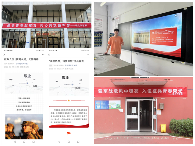 征兵宣传工作的开展,充分调动了广大青年学子应征入伍的积极性,激发了学生携笔从戎、应征入伍的热情,2022年秋季我系11位同学通过审查应征入伍。(现代汽车系 贺庆)