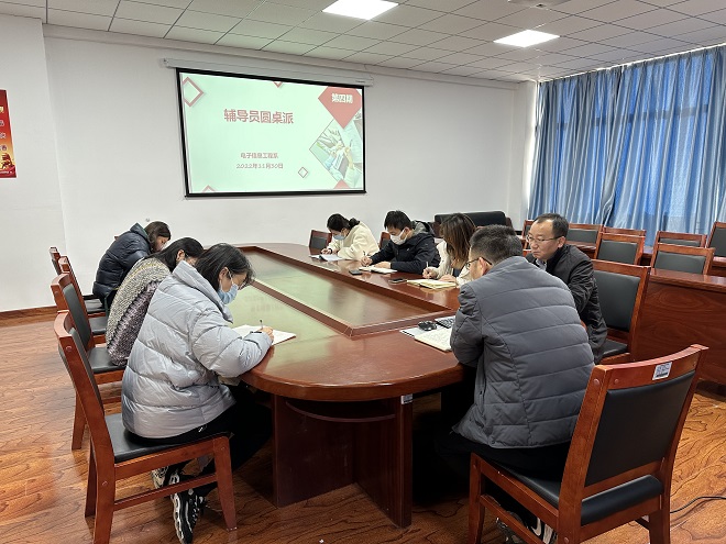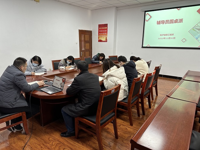 11月30日下午,电子信息工程系在地滋楼A404召开辅导员工作沙龙,会议由学工科长马先波主持,全体辅导员参加会议。