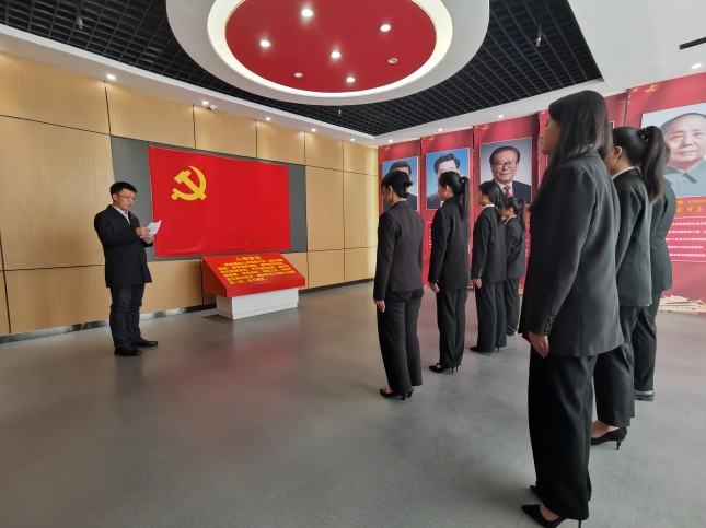 宣誓仪式在庄严的《国际歌》中拉开帷幕。学生支部宣传委员林见松同志宣读参加入党宣誓的预备党员名单,黄贤刚同志为9名预备党员佩戴党员徽章,9名预备党员在组织委员殷会聪同志的领誓下,面对鲜红的党旗,高举右拳,庄严宣誓。宣誓结束后,预备党员代表徐红昕同志、入党积极分子代表姜昕悦同志分别发言,表达了不断努力加强政治基础理论学习,坚定理想信念,不断提高自身素质,奋发进取,争做合格党员的决心和信心。进行入党宣誓,对新党员来说,是最实际、最生动的党的观念教育,也是进行自我教育的一种很好形式。入党宣誓,是党员政治生命开始的象征,是非常庄重、严肃的事情。党旗代表了党,誓词概括了党对党员的要求,也概括了党员对党组织和党的事业应承担的政治责任,而且有很强的针对性,有重大的教育意义。
