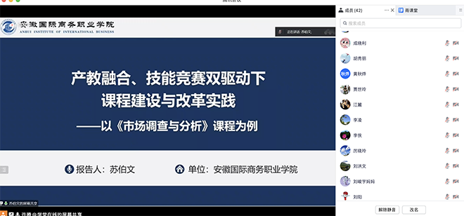 本次培训包括入门轻量级信息化教学体验、高效的课程建设与应用、职业教育国家在线精品课程建设与申报经验分享、职业教育国家在线精品课程建设与申报经验分享等四个专题讲座,来自清华大学学堂在线、皖西卫生职业学院、安徽国际商务职业学院的专家在线分享了雨课堂教学国家在线精品课程建设经验,并对教育部开展的2022年职业教育国家在线精品课程遴选工作进行了政策解读。培训从理论到实践,让参培教师收获颇丰、受益匪浅。培训答疑环节,教师们热情高涨,就实际应用和课程建设问题与培训老师进行互动交流。
