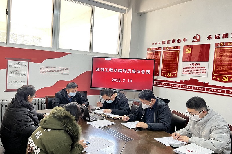 建筑工程系于2月10日组织召开新学期辅导员集体备课,并于2月11日召开新学期班主任集体备课,安排布置新学期学生工作任务,旨在加强班主任和辅导员队伍建设,更好地服务学生成长成才。建工系全体领导及辅导员班主任参加会议。