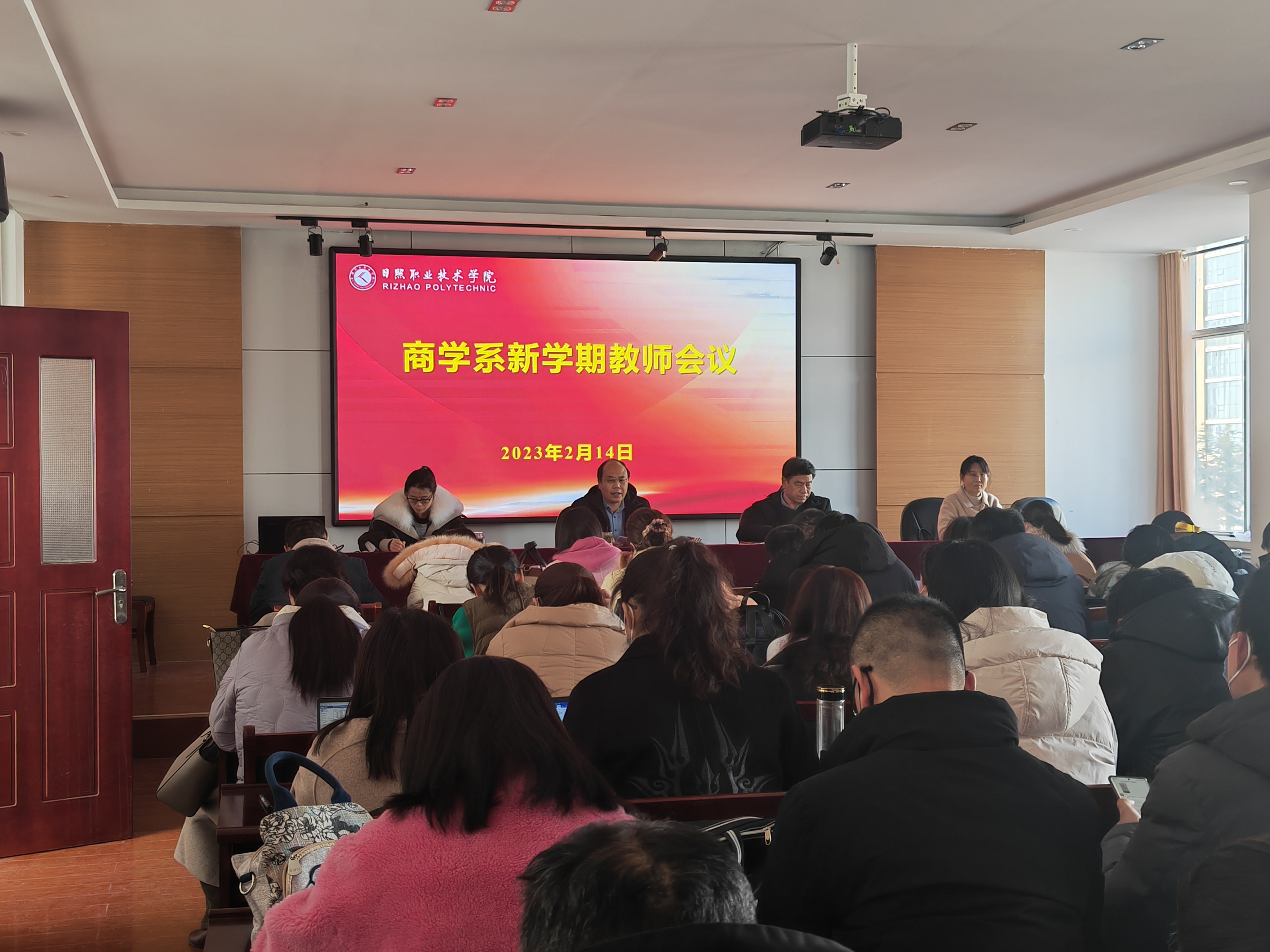 2月14日,商学系在海润楼三楼会议室召开新学期全体教师会,会议由商学系党总支书记牟宗国主持,党总支副书记李运昌、副主任申作兰、刘梅及全体教师参加会议。