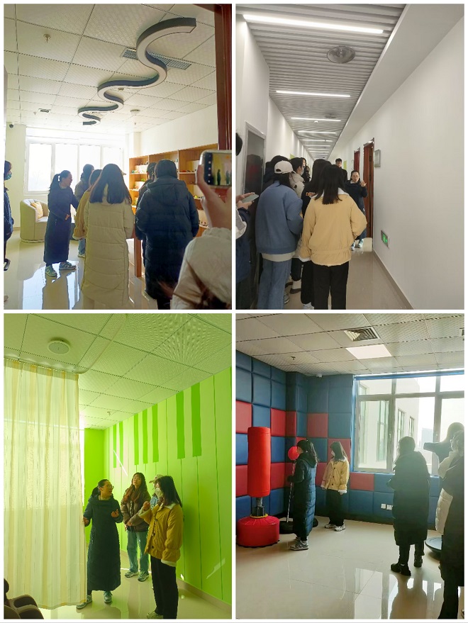 大学生心理健康中心教师周末和会计系心理辅导员王洪芹担任引导员,为同学们介绍心理中心的职能、心理咨询的预约流程及保密原则、心理健康教育活动的开展情况。朋辈互助员们亲身体验了个体咨询室、音乐放松室、情绪宣泄室、沙盘游戏室等。参观个体心理咨询室时,朋辈互助员们掌握了心理咨询预约的基本流程;在沙盘治疗室中,他们体验到了全新的展现自我的咨询方式;在情绪疏导室中,他们发现了合理的、安全的情绪宣泄方式;在团体辅导室,互助员们了解到团体心理辅导的意义和活动组织形式。在音乐放松室,学生们测试了解自己的压力情况,了解到这种新颖的方式来放松身心。