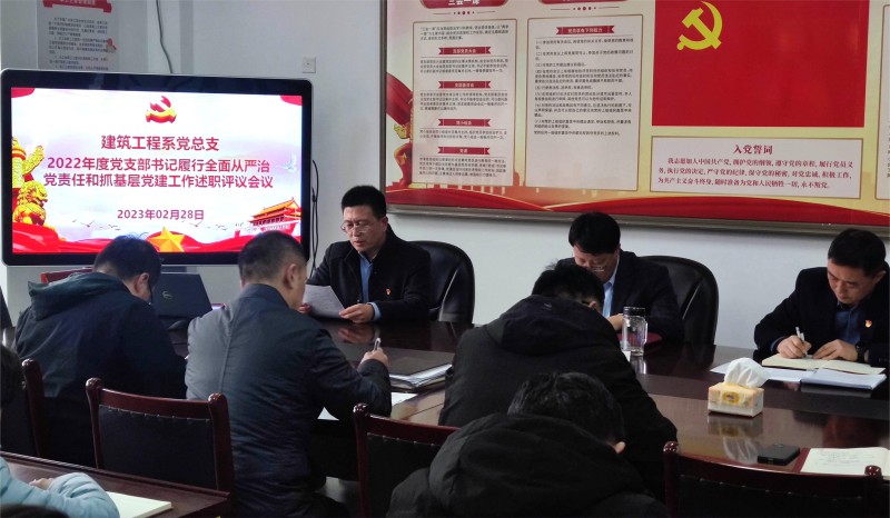 2月28日下午,建筑工程系党总支在海润楼N211党员活动室召开2022年度党支部书记履行全面从严治党责任和抓基层党建工作述职评议会。全体党员参会,学校副院长、系党总支副书记徐锡权主持会议。