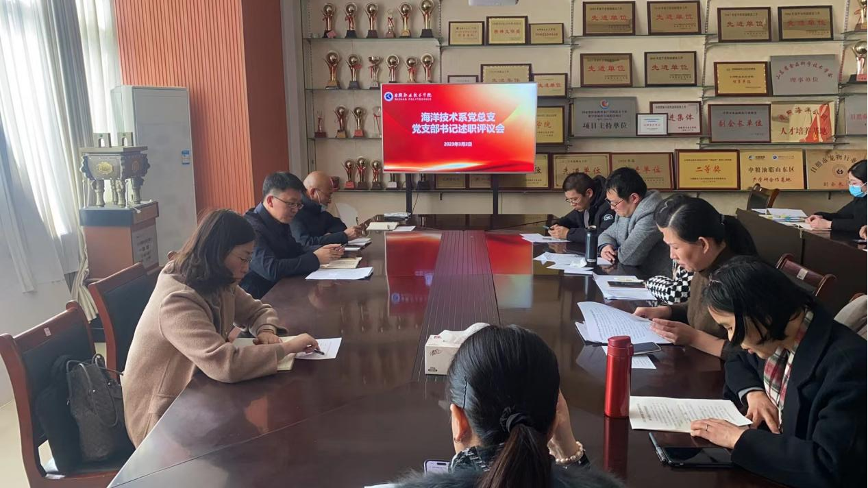 3月2日,海洋技术系党总支召开2022年度党支部书记述职评议会。党总支副书记黄贤刚主持会议,海洋技术系班子成员、各科室负责人、支部班子成员、组织员、党员代表参加会议。