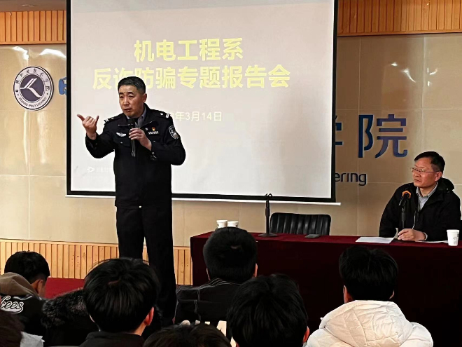 此次报告会的开展,进一步提升了我系学生识别、预防诈骗和校园欺凌等校园安全事件的能力,为进一步维护学生利益、保持校园治安稳定奠定了基础。(机电工程系 杨策策)