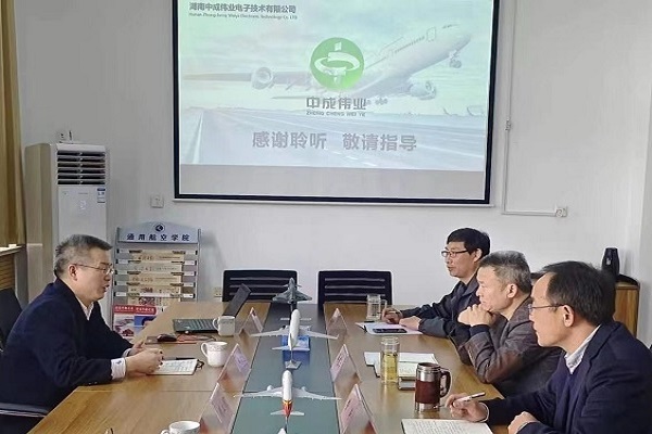 3月23日,湖南中成伟业电子技术有限公司董事长陈军乐一行2人来访我校。通用航空系党总支书记牟盛勇在和润楼B205会议室接待了来访客人,党总支副书记费涛、副主任孟凡收等参加交流。