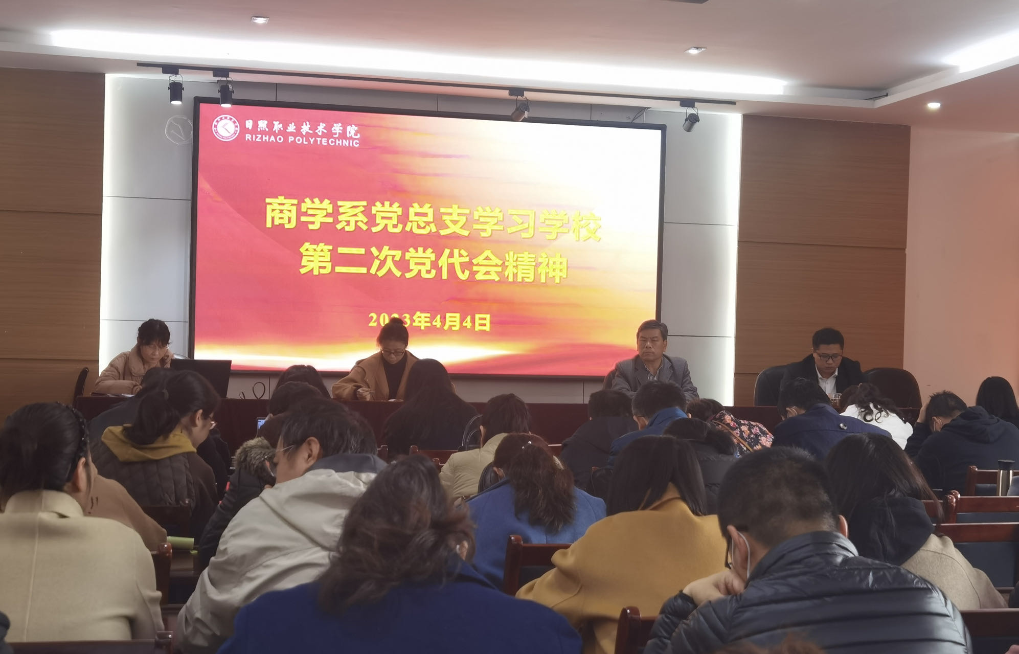 为深入学习贯彻学校第二次党代会精神,4月4日下午,商学系党总支在海润楼N302会议室召开全体教师会,专题学习党代会工作报告,系领导班子成员及全体教师参加会议。会议由党总支副书记李运昌主持。