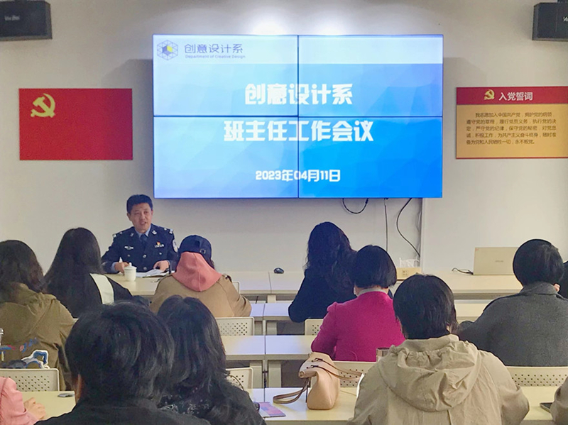 4月11日下午,创意设计系在地滋楼A219会议室召开安全及班主任工作会议,党总支副书记、全体辅导员、班主任参加会议。会议邀请学校所在辖区公安派出所所长迟玉飞担任主讲,党总支副书记张云丽主持会议。