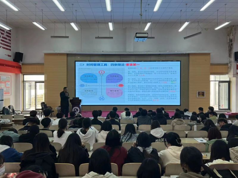 通过案例引入,刘宗奎为同学们介绍了什么是职业生涯规划,如何运用工具与原则进行职业规划。通过介绍高效能人士七个习惯,强调了“以终为始,要事第一”的重要性,并指导学生科学运用时间管理工具,合理安排自己的学业与未来。然后,从工作稳定性、求职心态、就业选择和专业对口的角度,为学生进行了详细而科学的指导。此外,对当前大学生就业形势、简历制作、求职与面试技巧等方面存在的问题也进行了有效的答疑解惑。