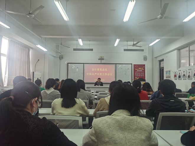 为全面贯彻党的二十大和今年的两会精神,深入落实学校2023年全面从严治党的工作部署,4月13日下午,会计系党总支在海润楼S404召开2023年全面从严治党工作会议。会议由党总支书记訾波主持,全体教职工参加会议。