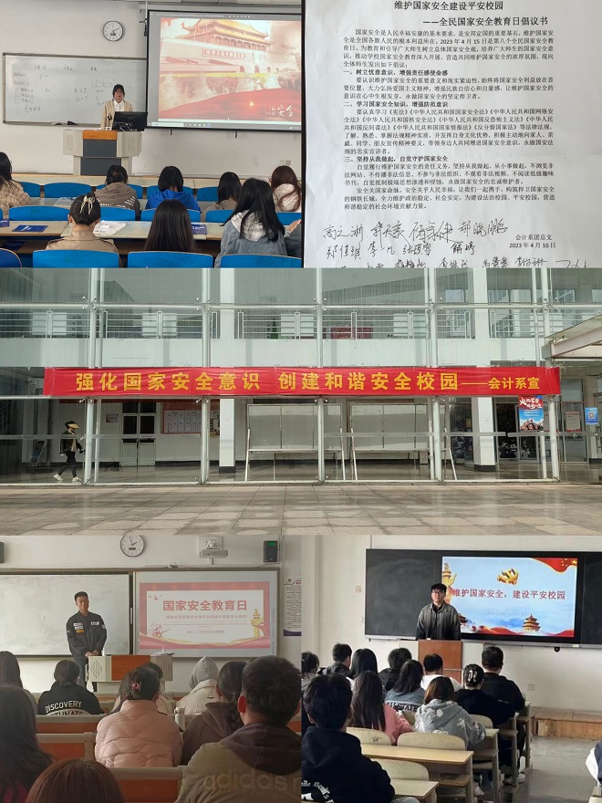 为深入贯彻落实总体国家安全观,进一步增强青年学生的国家安全意识,引导学生树立正确国家安全观,4月14-17日,会计系组织各班级开展了“维护国家安全,建设平安校园”主题安全教育班会活动。