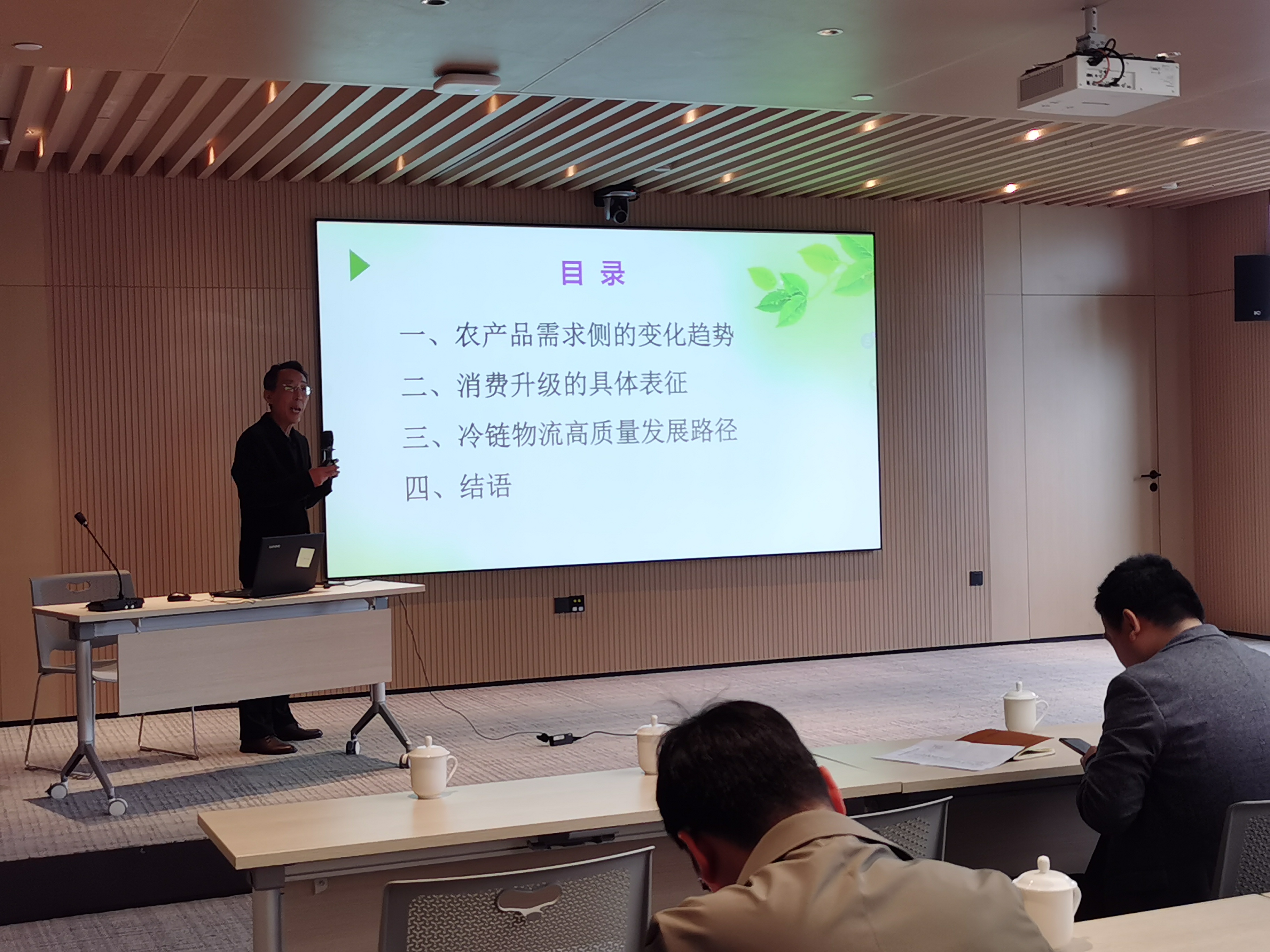 曲阜师范大学管理学院教授和硕士研究生导师李学工作了以“消费升级下冷链物流高质量发展的路径选择”为题的培训报告,李教授从农产品需求侧的变化趋势、消费升级的具体表征和冷链物流高质量发展路径三个方面进行讲解,报告指出,冷链物流将迎来中国前所未有的发展机遇,最大限度推进高水平开放,真正实现其高质量发展。